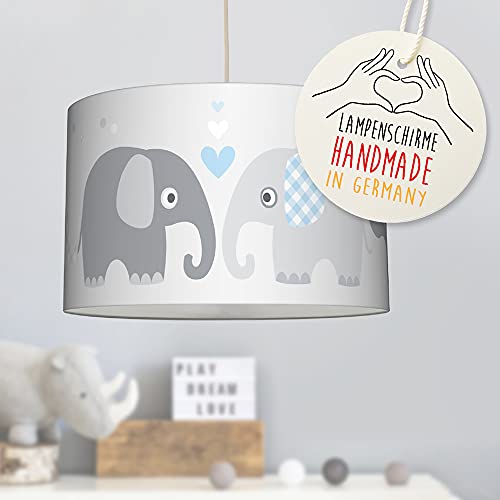 Label PLAFONNIER ÉLÉPHANTS BLEU/GRIS - Abat-jour enfants/fem...