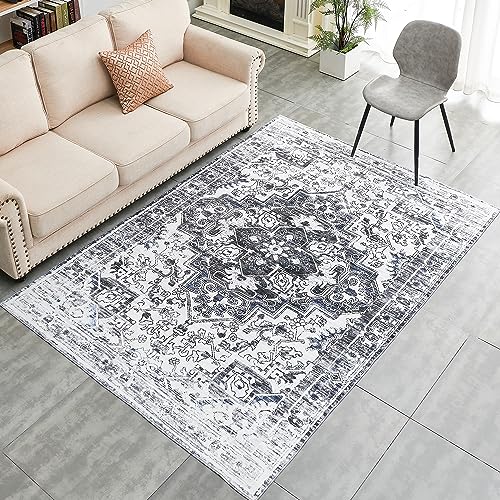 Laibei Tapis Vintage Gris Bleu Ultra-Fin Lavable