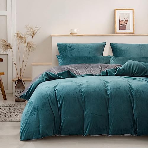Gezu Sets Housse Couette Flanelle 220x240cm Bleu Gris