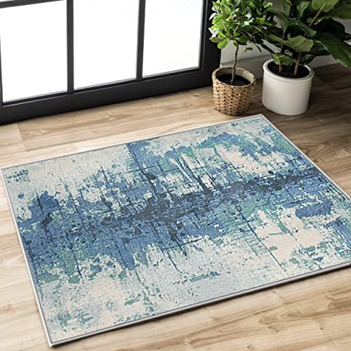 ASINI Tapis Abstrait Moderne Bleu Antidérapant Grand Gris