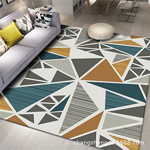 Tapis Moderne Couture Lavable Rug Géométrique Gris Jaune Mar...