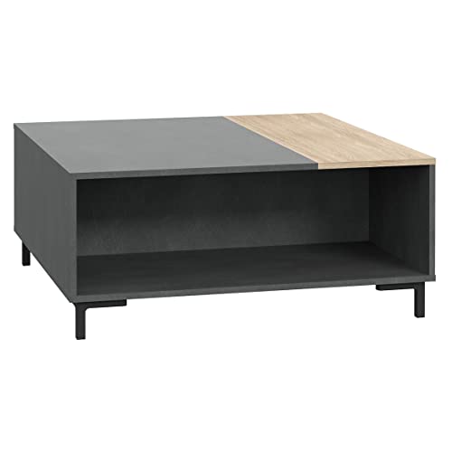 Meuble Table Basse Basique Finition Béton Gris Chêne Noir Pi...