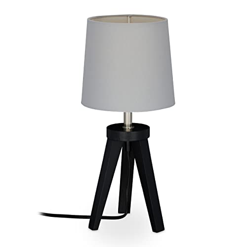 Relaxdays lampe à abat-jour 3 pieds bois/tissu E14 noir/gris