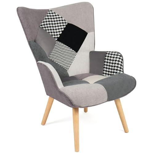 IDMarket - Fauteuil scandinave Ivar en Tissu Patchwork Noir,...