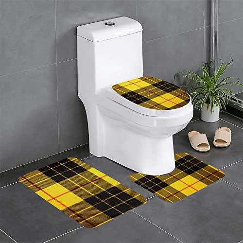 Evis Ensemble Tapis Bain Carreaux Jaunes Gris Noirs