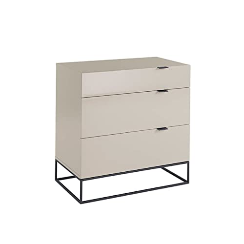 Angel Cerdá Commode bois laqué gris perle, 3 tiroirs, fermet...