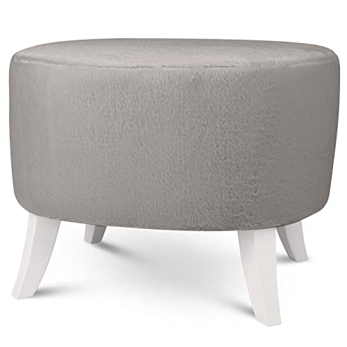 Pouf Ovale 52x62x46 cm Tissu Gris Clair Pied Bois Blanc