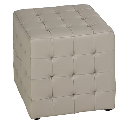 Cortesi Charli Pouf Cube Tufté Cuir Vrai Gris