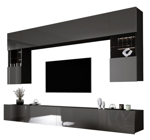3E 3xE living.com Ensemble Meuble TV Mural, Noir Mat/Gris Br...