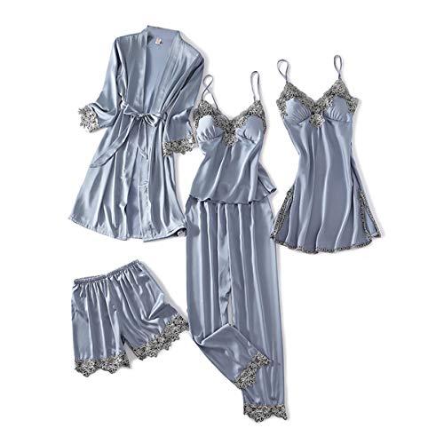DEBAIJIA Femmes Chemise Robe 5 Pièces Nuit De Nuit en Satin...