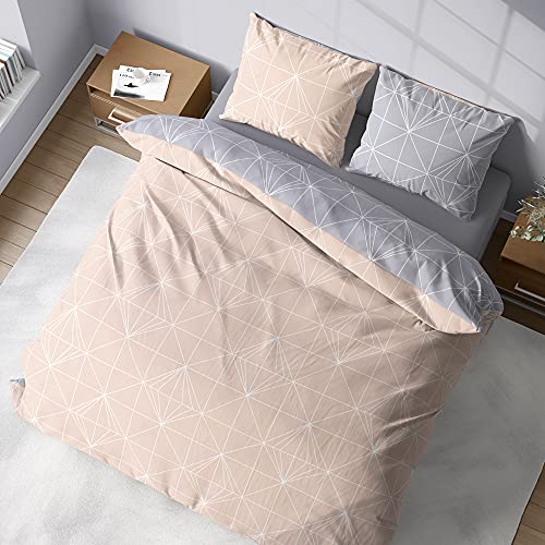 Parure de lit géométrique Rose et Gris 260x240 cm avec couet...