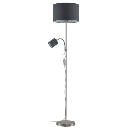 Lindby Lampadaire Gris Métal Tissu Melanie E27 Salon