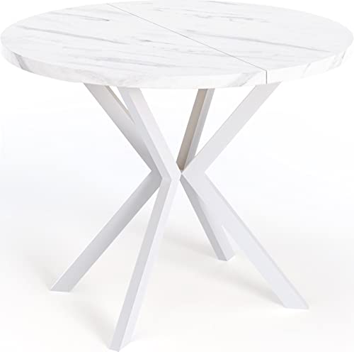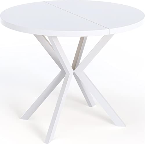 Table Style WFL GROUP Extensible Ronde Métal Blanc 90-170cm
