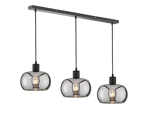 Fischer Honsel Suspension Verre Fumé Noir 110x22 cm 3amp E27...