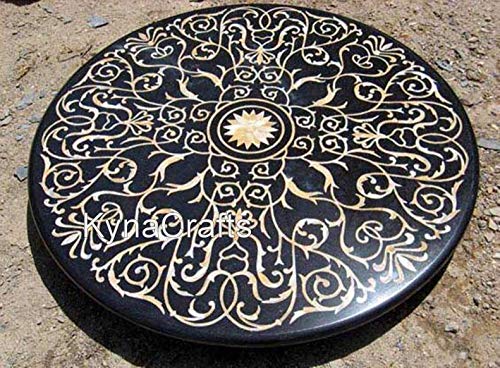 Table de salle à manger ronde marbre noir 152,4 x 152,4 cm i...