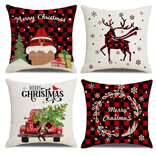 OCEUMACO Housse de Coussin 40x40 Noël Plaid Décoratif Housse...