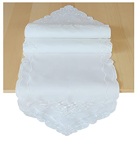 Série de décoration de salle à manger - Brodée en blanc lain...