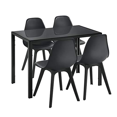 Ensemble Table et Chaises Métal Bois Plastique Noir 105x60x7...