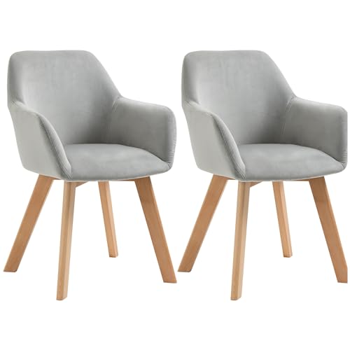 Lot de 2 chaises salle à manger en tissu blé avec pieds noye...