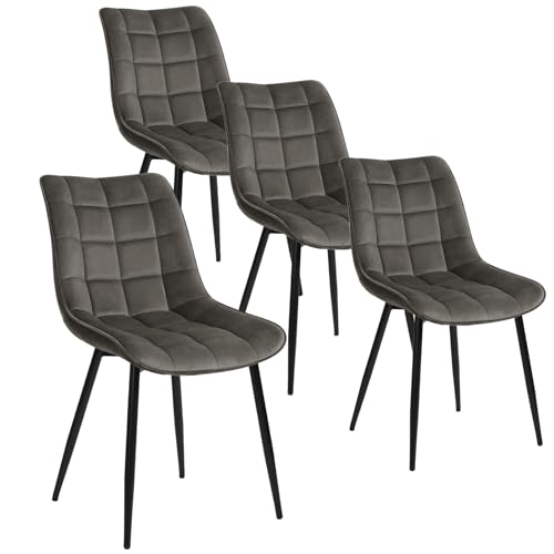 Woltu 4X Salle Cuisine Assise Velours Rembourré Métal Gris