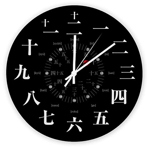 XVBCDFG Horloge murale japonaise style Kanji noir cadran ron...