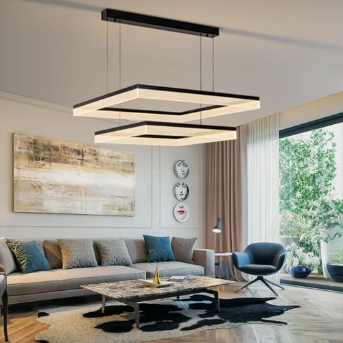 Lysdja Lustre Grand Rectangulaire Pendentif Lumière 2 Couche...