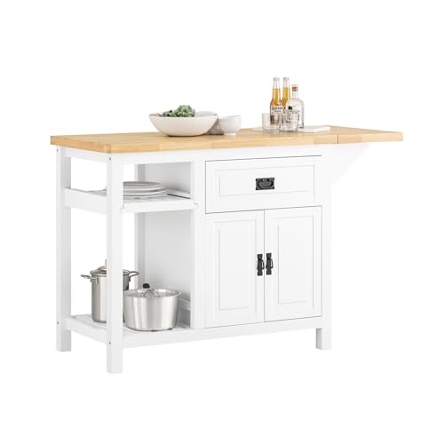 Ilot Central Plan de Travail Extensible en Bois d'Hévéa