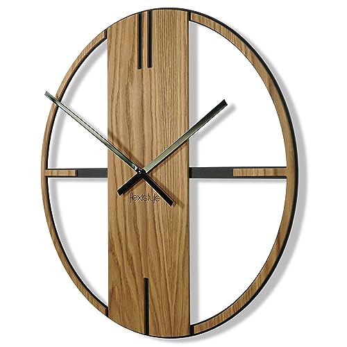FlexStyle Horloge murale métal unique noir bois 50cm z21e