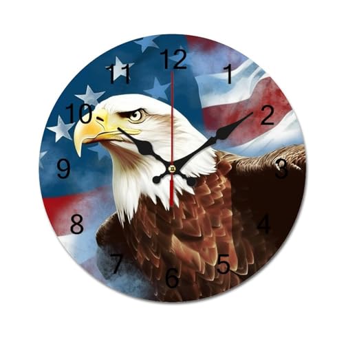 NTVOWPZO Horloge murale de 25,4 cm avec aigle blanc américai...