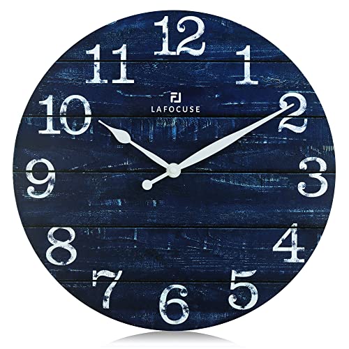 Horloge murale bois rustique silencieuse shabby chic bleu