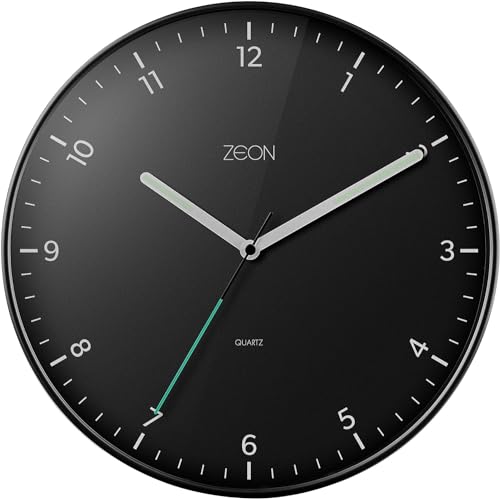 ZEON Horloge Murale analogique Ronde, Horloge Murale Noire F...