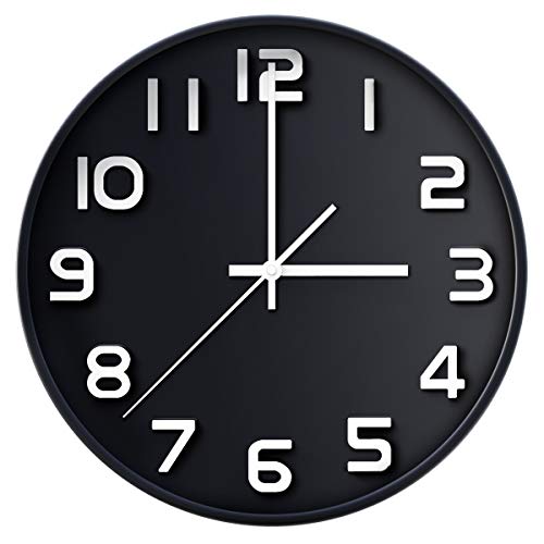 Horloge murale noire de 30,5 cm : grand écran 3D pour voir l...