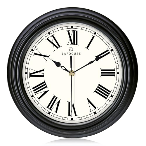 Lafocuse Horloge Murale Noir Silencieuse Chiffres Romains Pe...