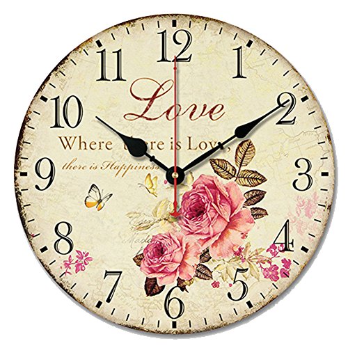 SWHONG Retro Shabby Chic Décor Amour Rose Horloge Murale Cha...