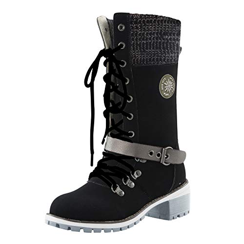 Bottes Femmes Hautes Talons Carrés Lacets Bout Rond Solide