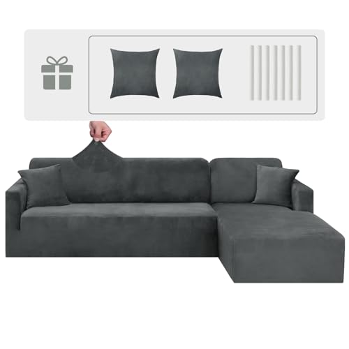 CHELZEN Velours Housse de Canapé Peninsula en Forme de L, 2...