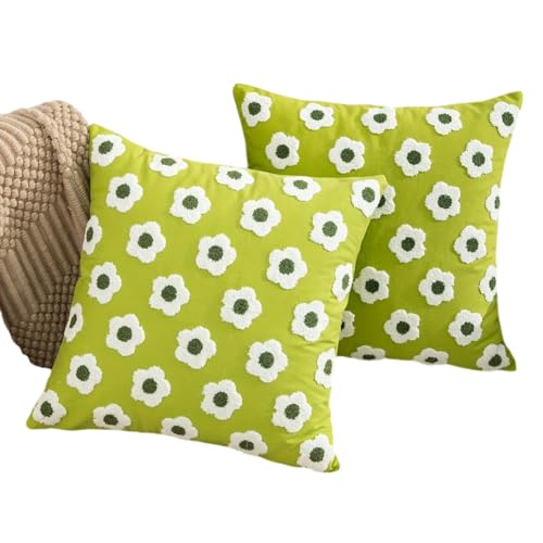 Lot de 2 housses de coussin carrées brodées petites fleurs e...