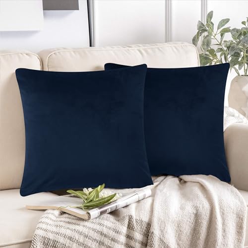 Idocolors Lot de 2 Housses de Coussin en Velours Bleu Foncé...