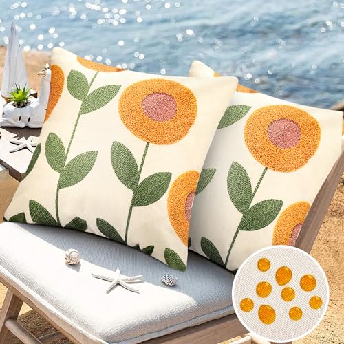 Topfinel Housse de Coussin 50x50 Lot de 2 Jaune Moutarde Dec...