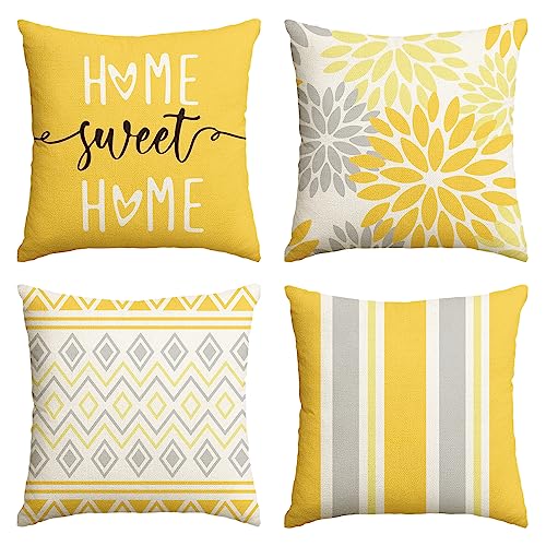 Aoihrraan 40x40cm Lot de 4 Housse de Coussin Jaune Gris Blan...