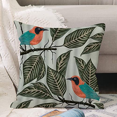 Taie d''oreiller 45x 45cm,Oiseaux Plantes Tropicales Flore E...