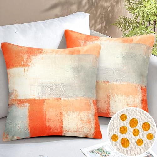 Housses Coussin Canape Orange Géométrie Moderne Imperméable...