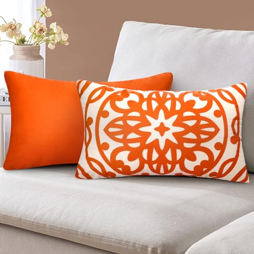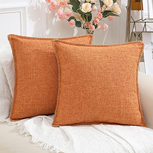 Encasa Housse de Coussin en Chenille Lot de 2 | Orange - (16...