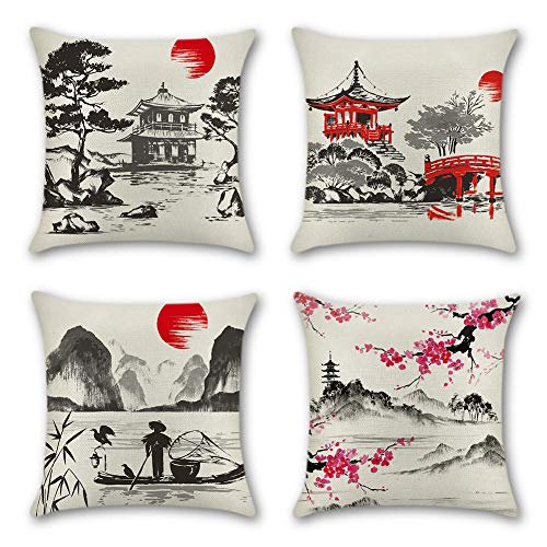 Artscope Lot de 4 Housse De Coussin, Polyester et Lin Décora...