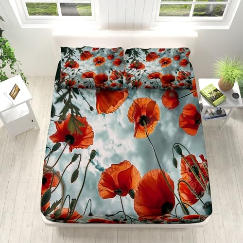 Generic Drap Housse 200x200cm Fleur de Coquelicot Rouge Hous...