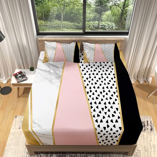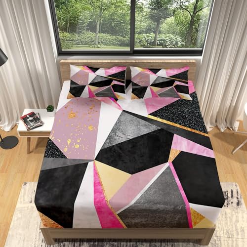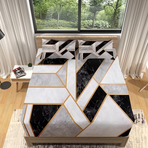 Drap Housse 140x190 Carreaux géométriques en marbre Housse d...