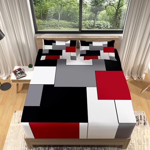 Drap Housse 140x190 Carreaux géométriques Housse de Matelas...