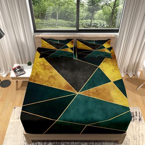 Drap Housse 140x190 Carreaux de marbre doré Housse de Matela...