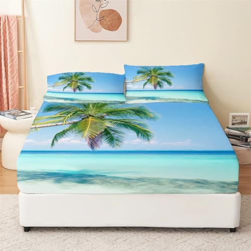 Drap Housse 160x200 Motif Motif de Cocotier de Plage Housse...