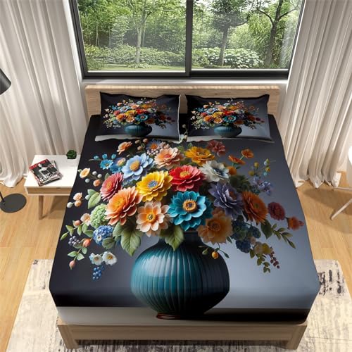 Drap-Housse 90x190 cm Fleurs Et Vases Drap Housse en Microfi...